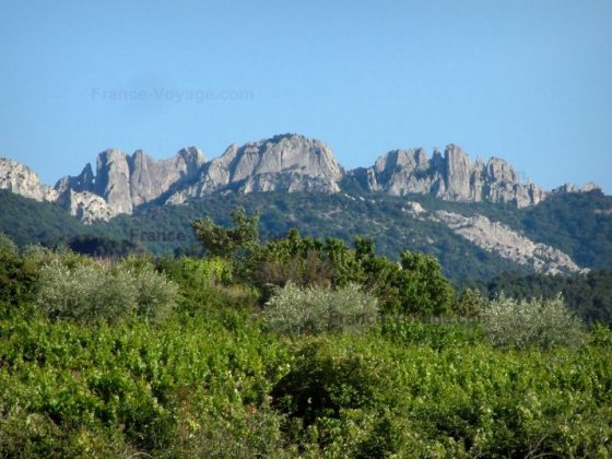 Les Dentelles de Montmirail sont la partie la plus occidentale du massif des Baronnies, dont font aussi partis la Montagne de Lure et le Mont Ventoux. Leur nom vient du profil coupant de leurs crêtes et des parois qui comptent plus de 600 voies d’escalade. La roche est calcaire jurassique et l’environnement est méditerranéen avec les forêts de chênes verts et de pins d’Alep. Aux pieds des parois on trouve de très bons vignobles et des sources d’eau minérale.