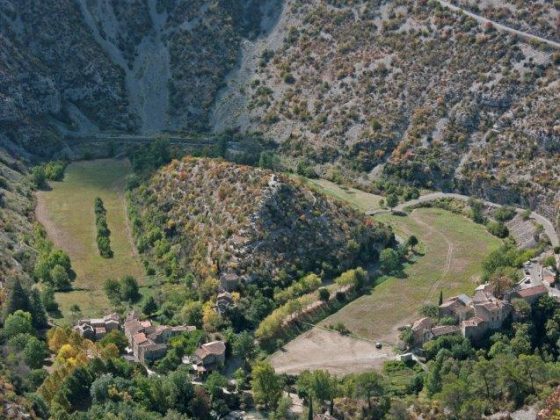 Dal belvedere di Blandas ci si affaccia sulle gole e sul Cirque de Navacelles, un meandro morto del fiume dove il villaggio omonimo sorge aggrappato alla collina al centro della depressione circolare, profonda 285 metri. Il letto abbandonato dal fiume è coltivato a prato, sovrastato dalle ripide pareti della gola. Una cascata indica il punto dove, circa 6000 anni fa, il fiume ha rotto il peduncolo del meandro. Il villaggio, molto suggestivo, è tutto costruito in pietra. Il nome, anticamente Nova Cella, denuncia la sua origine monastica. Navacelles è citato la prima volta all’inizio dell’XI secolo, come pertinenza dell’abbazia di Gellone di St-Guilhem-le-Désert.